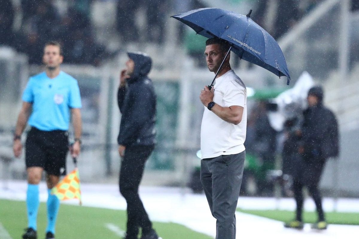 Ο αγώνας μεταξύ του Παναθηναϊκού και της Γκόου Αχέντ Ίγκλς για τη 2η αγωνιστική της League Phase του Europa League ξεκίνησε κάτω από άσχημες καιρικές συνθήκες, με την βροχή να πέφτει στο γήπεδο ασταμάτητα.
