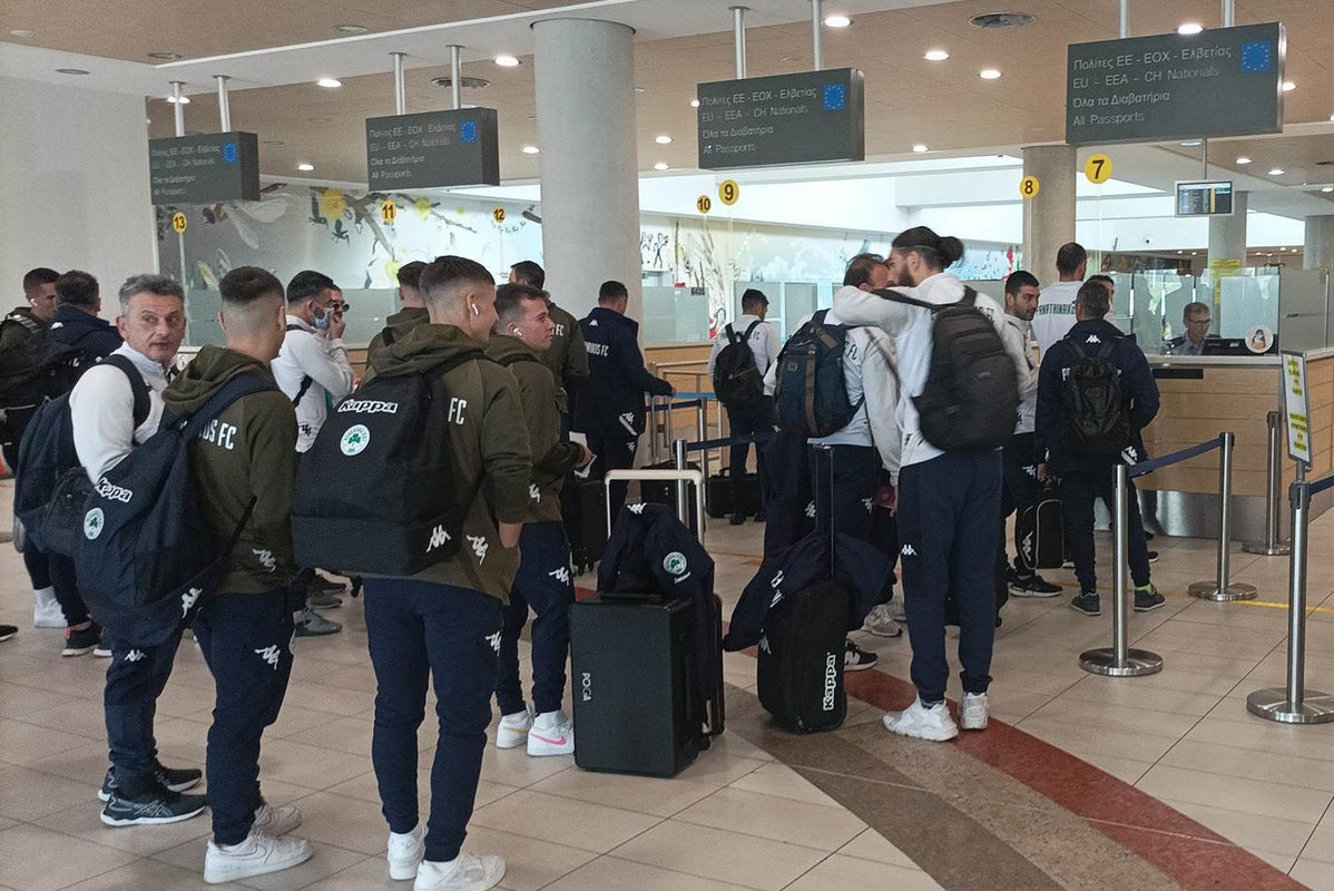 Στο “Ελ. Βενιζέλος” άλλη μια έκπληξη περίμενε την αποστολή του Παναθηναϊκού όσο αυτή περίμενε στην πύλη επιβίβασης. Συγκεκριμένα έπαιξε από τα μεγάφωνα ο ύμνος του συλλόγου, πράγμα πρωτόγνωρο στα χρονικά των ταξιδιών της ομάδας τα τελευταία χρόνια.