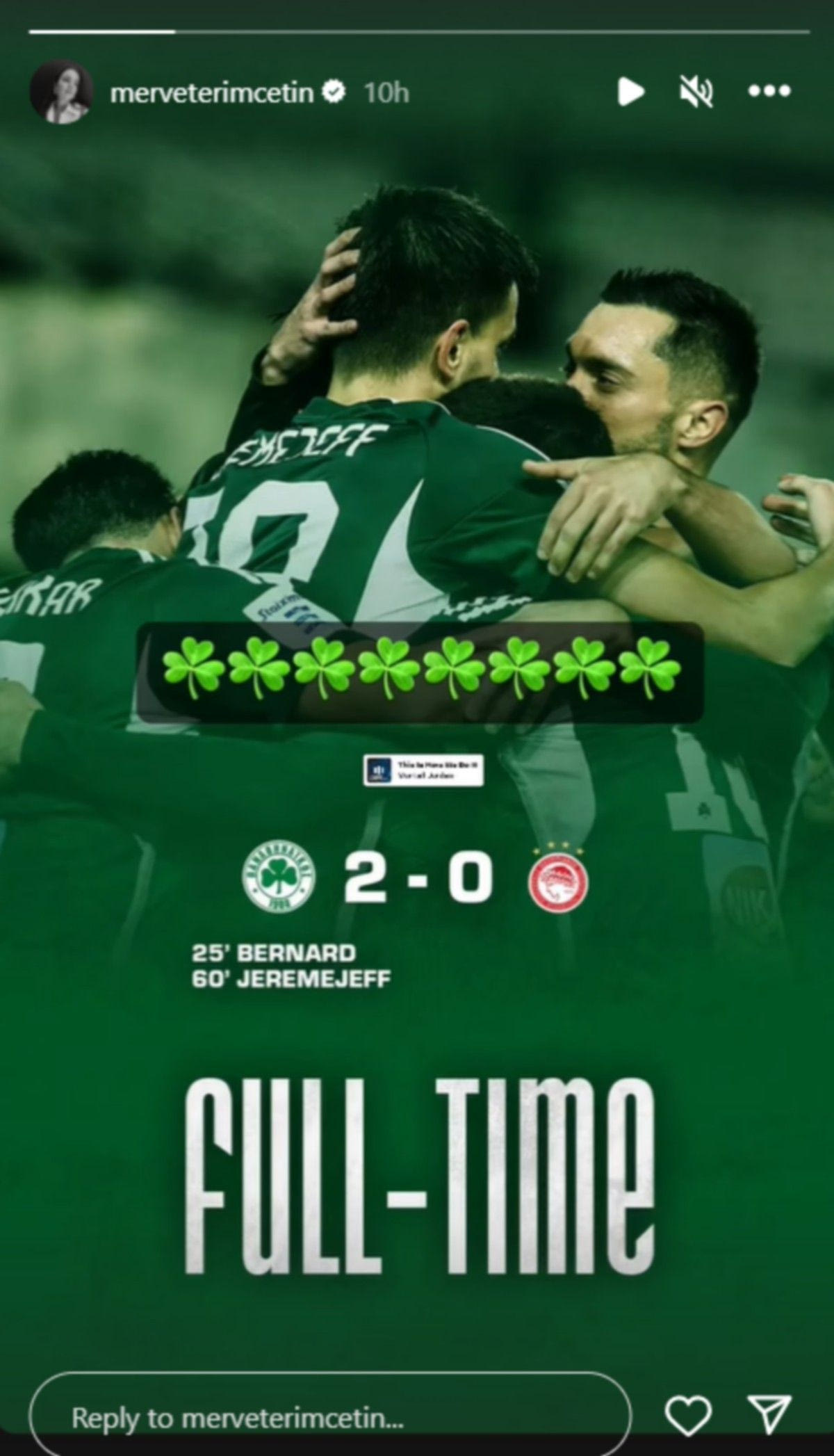 Η κόρη του Φατίχ Τερίμ, Μερβέ, πανηγύρισε τη νίκη του Παναθηναϊκού και δεν παρέλειψε να κάνει και σχετική ανάρτηση στο Instagram.
