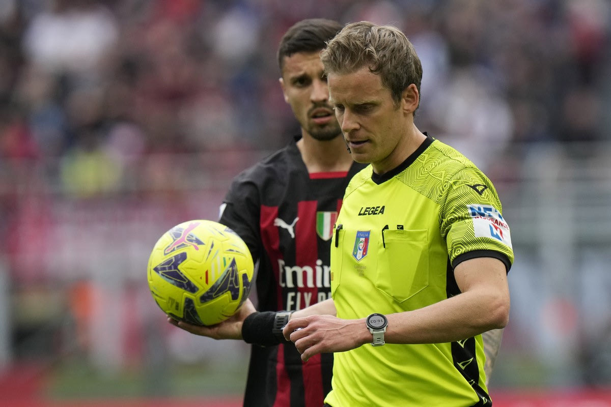 Ο διαιτητής Ντανιέλε Κίφι σε στιγμιότυπο της αναμέτρησης της Μίλαν με τη Λέτσε για τη Serie A 2022-2023 στο "Τζιουζέπε Μεάτσα", Μιλάνο | Κυριακή 23 Απριλίου 2023 © 2023/Luca Bruno/AP IMAGES