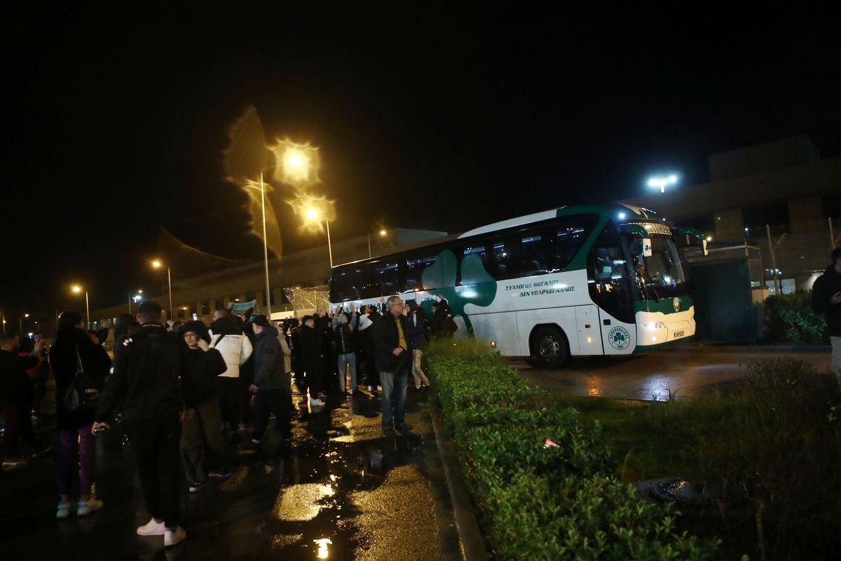 Παρά την βροχή, οι φίλοι του τριφυλλιού έμειναν εκεί για να υποδεχθούν και να αποθεώσουν τον Φατίχ Τερίμ και τους παίκτες του, ζητώντας -τι άλλο- την πρόκριση στον τελικό του Κυπέλλου Ελλάδας Betsson σε μια βδομάδα, στο “Απόστολος Νικολαΐδης”.