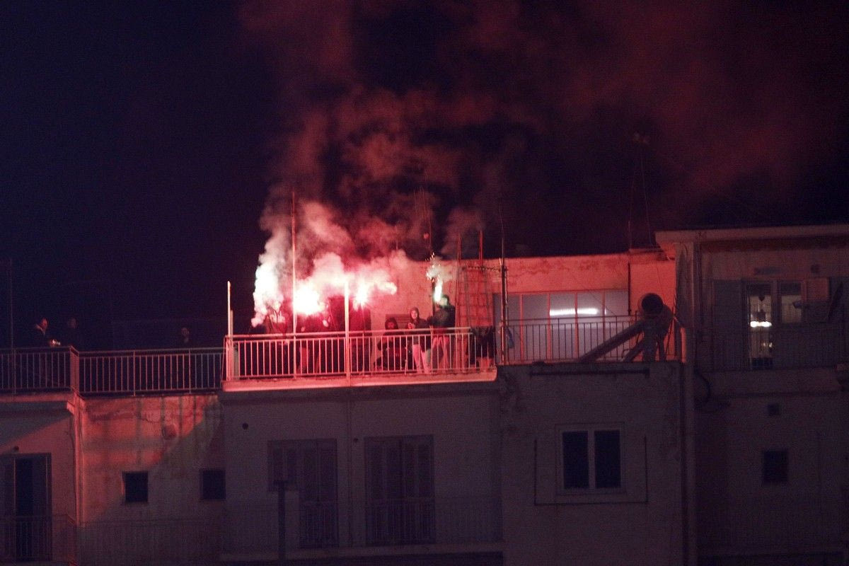 Και όχι μόνο είδαν το παιχνίδι και τη νίκη του Παναθηναϊκού επί του Ολυμπιακού αλλά την πανηγύρισαν κιόλας με συνθήματα και καπνογόνα πάνω στην ταράτσα.