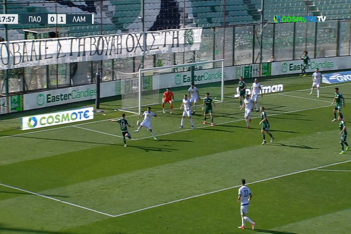 Τέσσερα λεπτά μετά το γκολ που δέχτηκε από τη Λαμία ο Παναθηναϊκός ισοφάρισε σε 1-1 με σκόρερ τον Τσέριν μετά από ασίστ του Αράο.