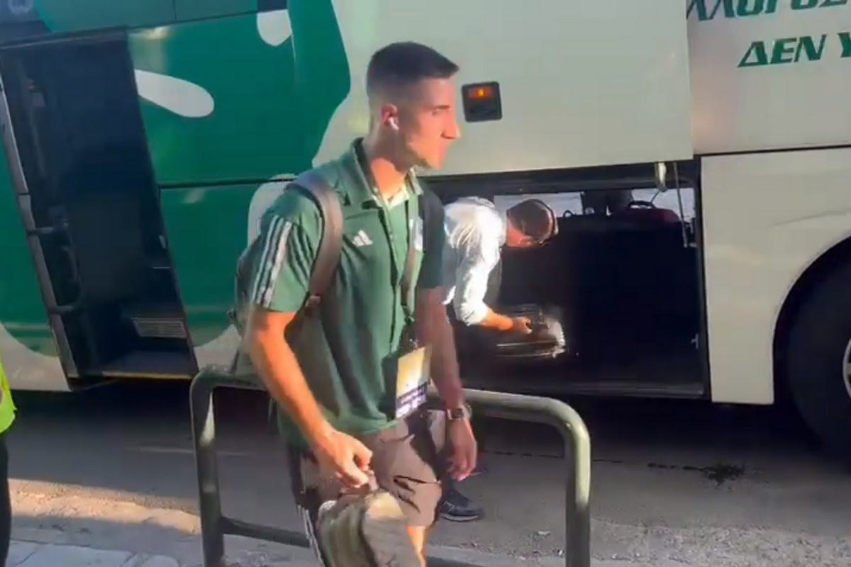 Σχεδόν πέντε λεπτά αργότερα αφίχθηκε στο γήπεδο και η αποστολή του Παναθηναϊκού για την αναμέτρηση.