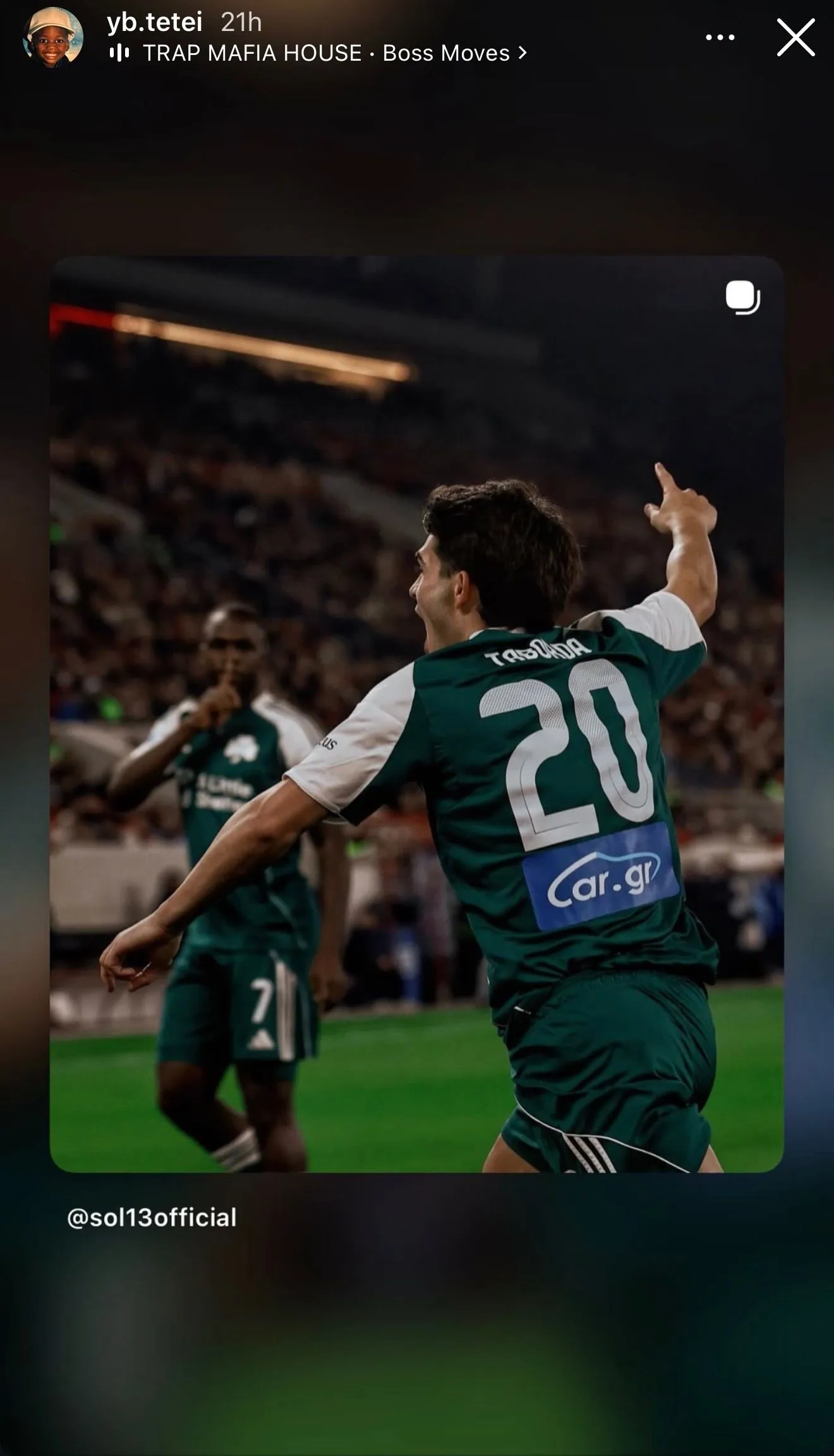 Ο νεαρός άσος των “πρασίνων” ανέβασε στο Instagram story του στιγμές από το χθεσινό μεγάλο παιχνίδι επικράτησης μέσα στο Καραϊσκάκης, συνοδεύοντάς τες με το κομμάτι “Boss Moves” από Trap Mafia House, δίνοντας τον δικό του ρυθμό στους πανηγυρισμούς μετά τη νίκη στο αιώνιο ντέρμπι.