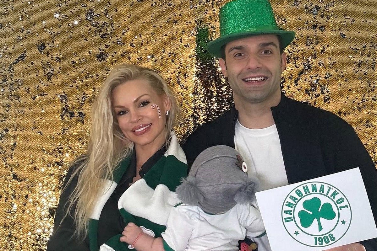 Η Βίκυ Κάβουρα πόζαρε, φορώντας κασκόλ του Παναθηναϊκού, στο πλευρό του Γιώργου Τζαβέλλα και αγκαλιά με το παιδάκι τους.