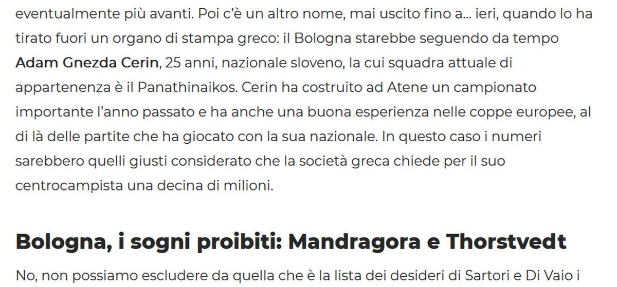 “Η Μπολόνια φέρεται να παρακολουθεί τον Άνταμ Τσέριν, έναν 25χρονο διεθνή Σλοβένο που αγωνίζεται αυτή τη στιγμή στον Παναθηναϊκό.