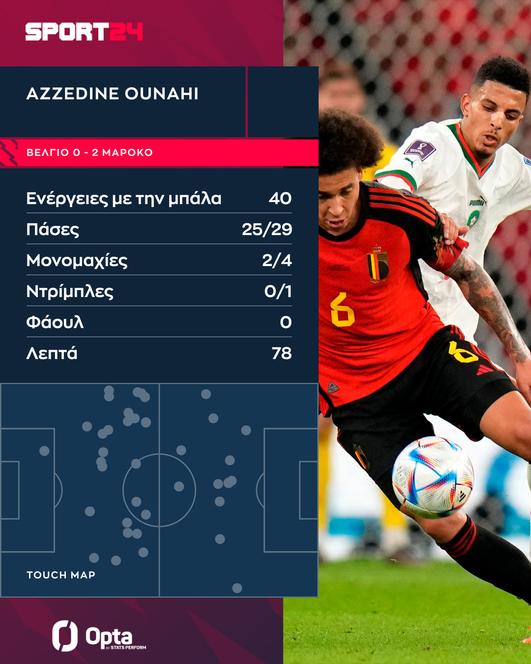 Επίσης, ήταν σχεδόν αλάνθαστος με 25 στις 29 πάσες. Θυμίζουμε σ’ ένα ματς που το Βέλγιο θέλησε να πιέσει, ειδικά από τον άξονα. Επιπλέον, είχε 2/4 μονομαχίες, δεν κατάφερε να κάνει ντρίμπλα, ενώ σ’ ένα ακόμη ματς δεν έκανε ούτε ένα φάουλ.