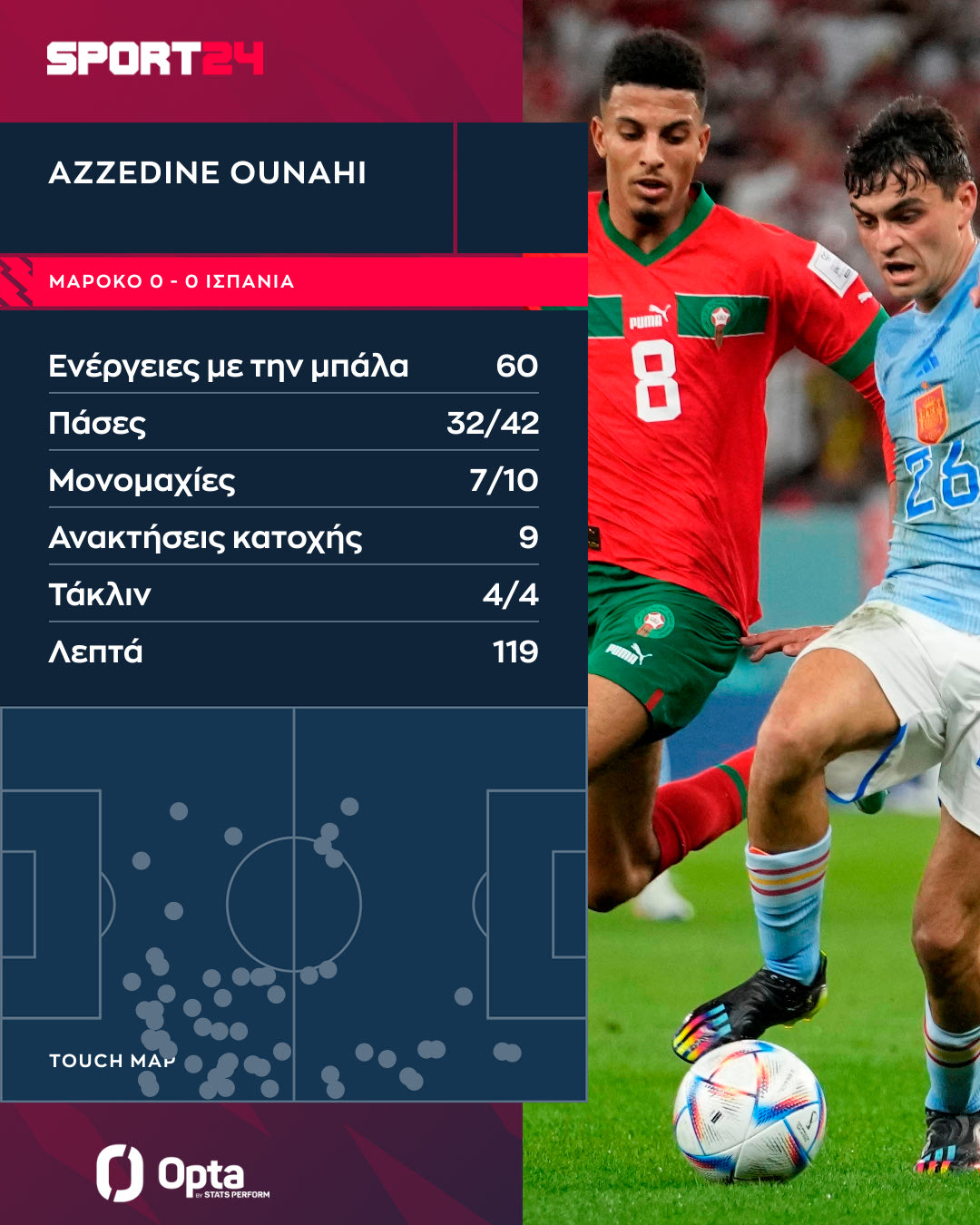 Όλα αυτά στα 119 λεπτά που έπαιξε, με το Μαρόκο να κρατάει το μηδέν και να παίρνει εν τέλει την πρόκριση για τα προημιτελικά στα πέναλτι.