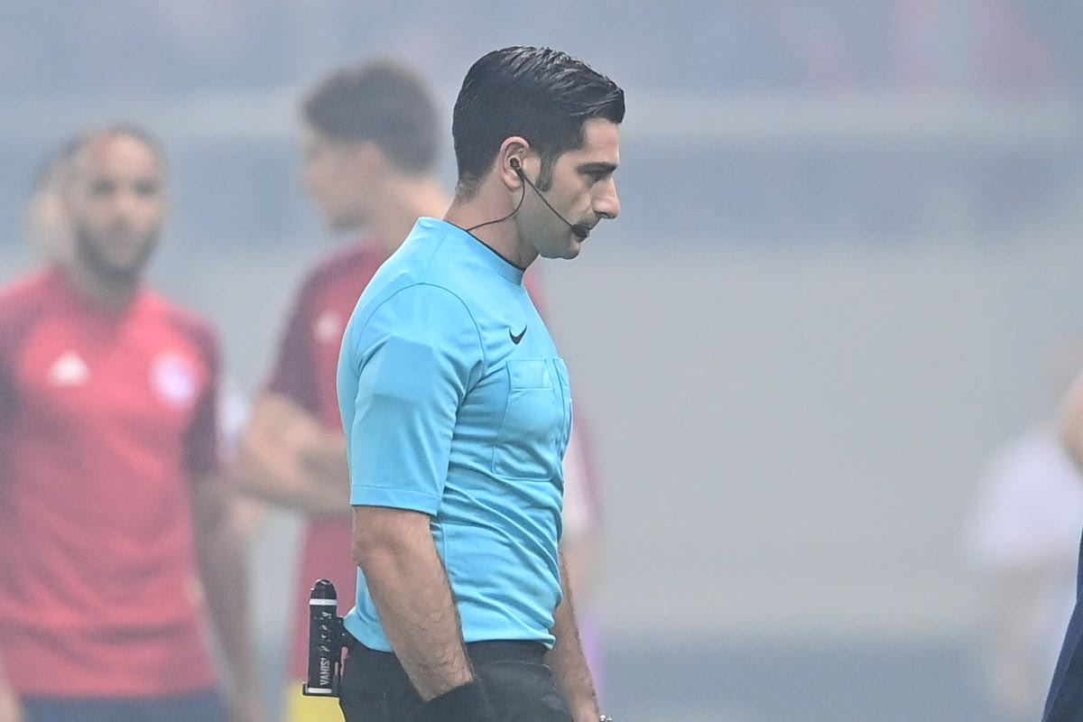 Ο διαιτητής Φάμπιο Μαρέσκα σε στιγμιότυπο της αναμέτρησης του Ολυμπιακού με τον Παναθηναϊκό στο "Γεώργιος Καραισκάκης" | Κυριακή 22 Οκτωβρίου 2023