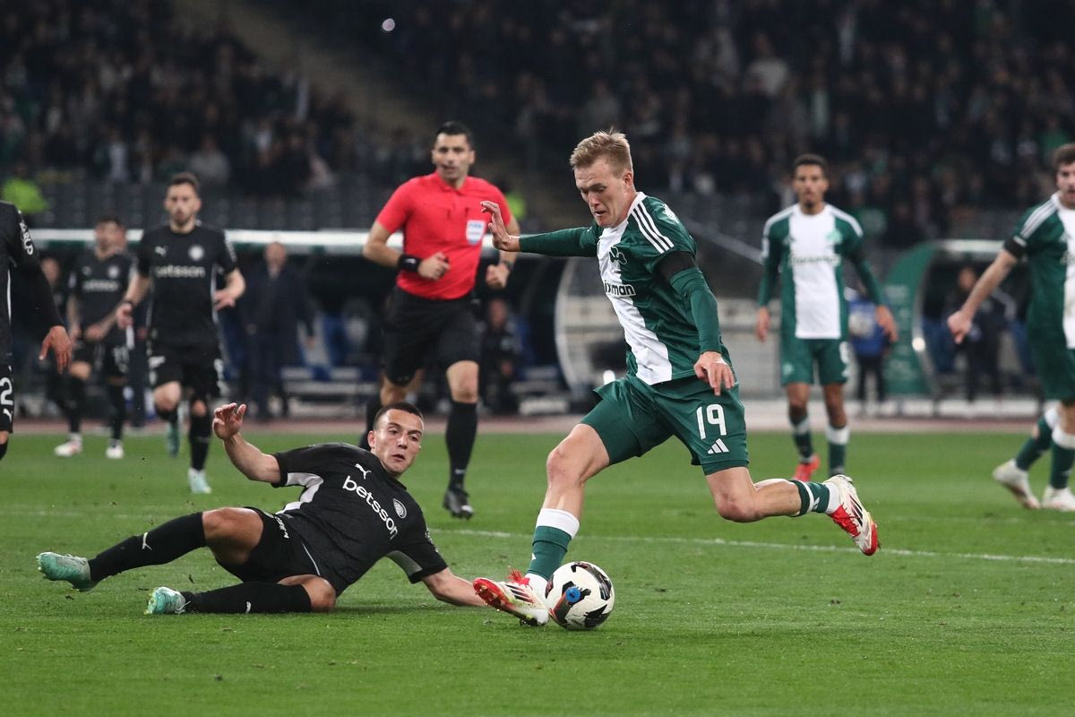 Μερικά εκατοστά μακριά από το πρώτο του γκολ με τη φανέλα του Παναθηναϊκού βρέθηκε ο Κάρολ Σβιντέρσκι, με τον Μπόρχα Γκονθάλεθ να του το στερεί με διώξιμο πάνω στη γραμμή.