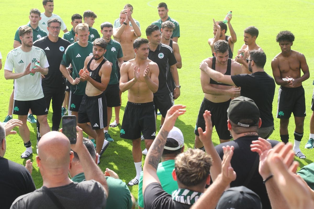 Οι παίκτες του Παναθηναϊκού στου φινάλε του φιλικού με την Μπράγκα κατευθύνθηκαν προς τους οπαδούς της ομάδας για να τους ευχαριστήσουν για την παρουσία και τη στήριξή τους.