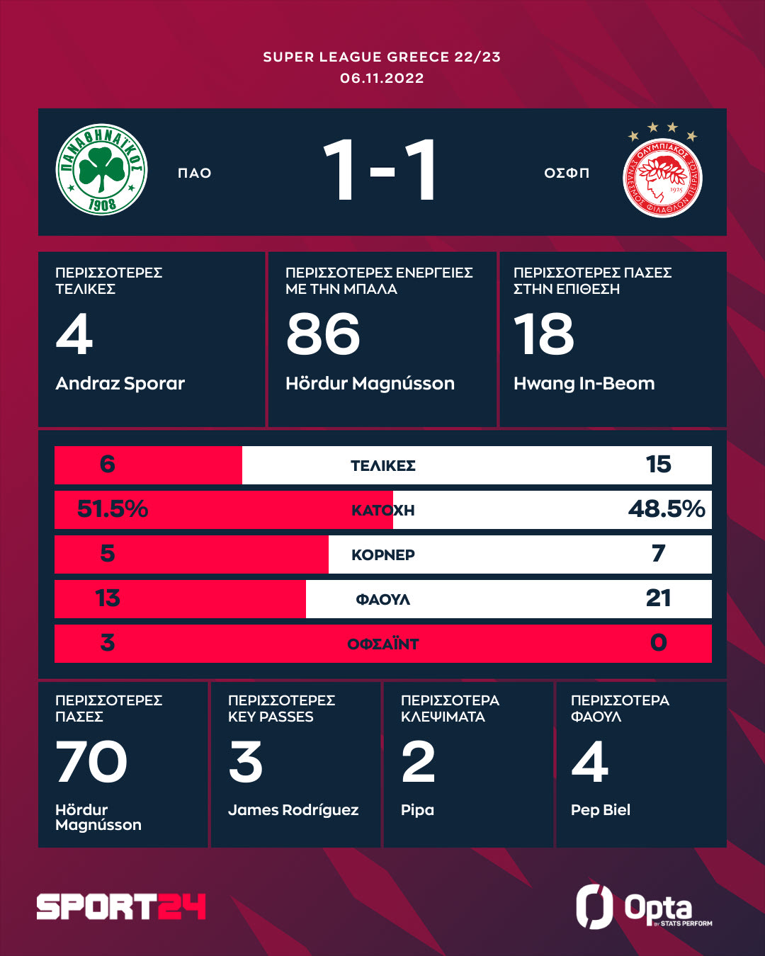 Κάπως έτσι, ο Παναθηναϊκός έσωσε τον πολύτιμο βαθμό στο φινάλε και φυσικά παρέμεινε αήττητος. Από την άλλη, ο Ολυμπιακός έχασε χρυσή ευκαιρία για να φύγει με το τρίποντο από τη Λεωφόρο.