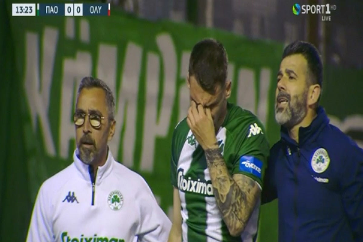 Ο στόπερ του Παναθηναϊκού ήταν μάλιστα απαρηγόρητος, δεδομένου πως αντιλήφθηκε γρήγορα ότι το πρόβλημα στο πόδι ήταν αρκετό για να του στερήσει τη συμμετοχή στο υπόλοιπο της αναμέτρησης με τον Ολυμπιακό.