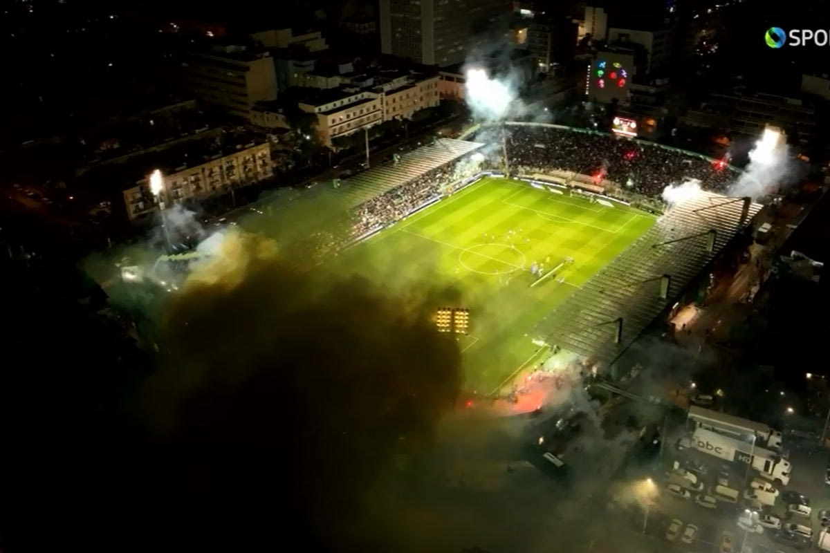Δεν προέκυψε όμως κάποιο πρόβλημα με την ατμόσφαιρα να καθαρίζει γρήγορα και το ντέρμπι να ξεκινάει ένα λεπτό μετά την προκαθορισμένη έναρξη του.