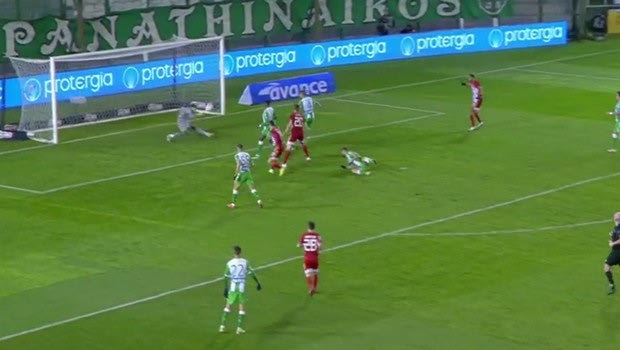 Ο Διούδης με μεγάλη επέμβαση με το πόδι στο πλασέ του Μασούρα κράτησε στο 89ο το 2-1 και τη νίκη για τον Παναθηναϊκό στο εντός έδρας ντέρμπι με τον Ολυμπιακό. (VIDEO)
