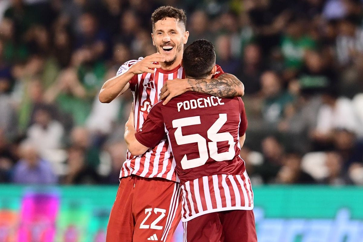 Ο Στέφαν Γιόβετιτς σκοράρειμε κεφαλιά για το 2-2 του Ολυμπιακού κόντρα στον Παναθηναϊκό