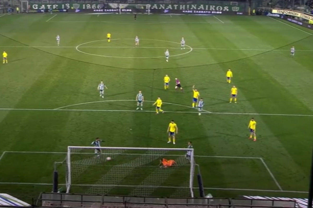 Ο Παναθηναϊκός άνοιξε το σκορ απέναντι στον Παναιτωλικό στο 62′. Ο Παλάσιος έκανε το σουτ εκτός περιοχής με τον Γκρατερόλ να μην αποκρούει σταθερά. Ο Κουρμπέλης που είχε πατήσει περιοχή έγινε αποδέκτης της μπάλας και παρά το γεγονός πως θα μπορούσε να σκοράρει έδωσε παράλληλα στον Μαντσίνι, ο οποίος από κοντά σε κενή εστία έκανε το 1-0.