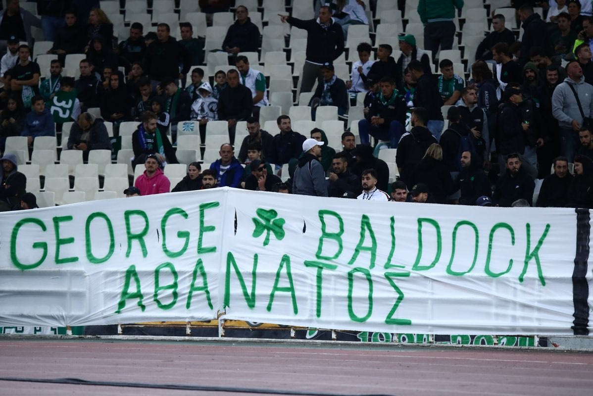 Η απώλεια του δεν είναι εύκολο να γίνει αποδεκτή από κανέναν και οι φίλοι του τριφυλλιού συγκίνησαν στο πλαίσιο του αγώνα με την Τσέλσι στο ΟΑΚΑ για το Conference League (24/10, 19:45, COSMOTE SPORT 5 HD και ANT1, LIVE από το SPORT24), κρεμώντας ένα πανό στις εξέδρες, το οποίο έγραφε με πράσινα γράμματα: “Τζορτζ Μπάλντοκ, αθάνατος”.