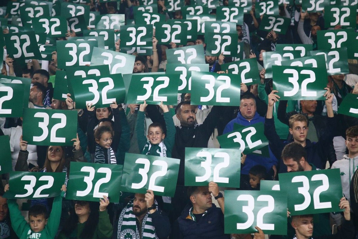 Επιπλέον, 32 παιδιά της ακαδημίας του Παναθηναϊκού σήκωσαν 32 λάβαρα με τον αριθμό “32”, προς τιμή του αδικοχαμένου Τζορτζ Μπάλντοκ, ενώ ο κόσμος των πρασίνων στις εξέδρες σήκωσε πράσινα χαρτόνια με τον αριθμό “32”.