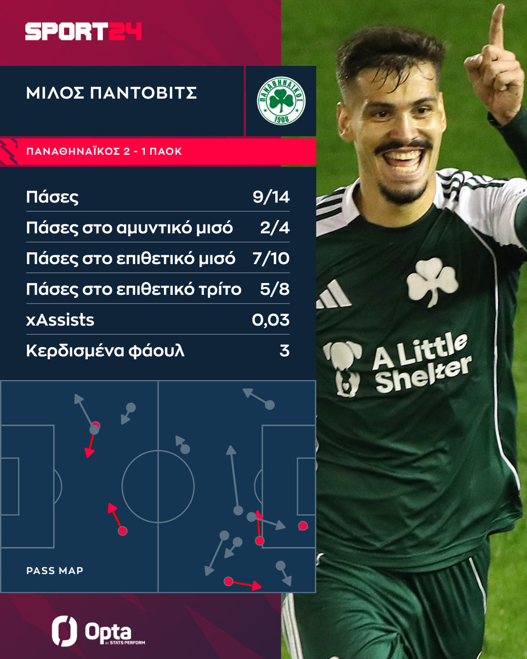 Παναθηναϊκός, Πάντοβιτς: Ο παίκτης της μίας στιγμής και των δύο ενεργειών στην περιοχή του ΠΑΟΚ