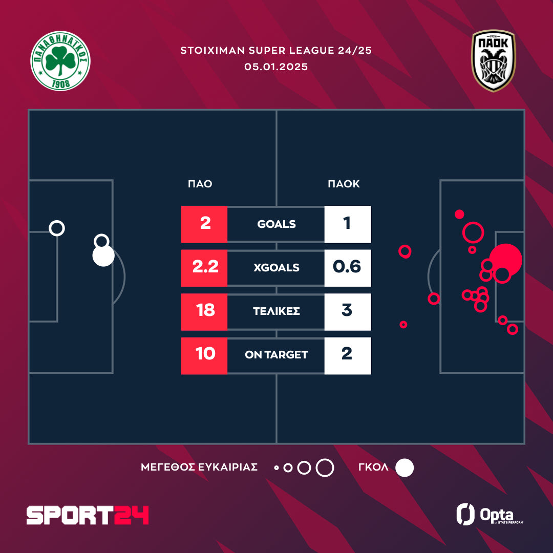 Ο Παναθηναϊκός με αυτό το τρίποντο ανέβηκε πρώτος έχοντας 35 βαθμούς, στο +1 από τον Ολυμπιακό και την ΑΕΚ με ένα παιχνίδι περισσότερο από τους ερυθρόλευκους. Ο ΠΑΟΚ είναι τέταρτος με 33 βαθμούς.