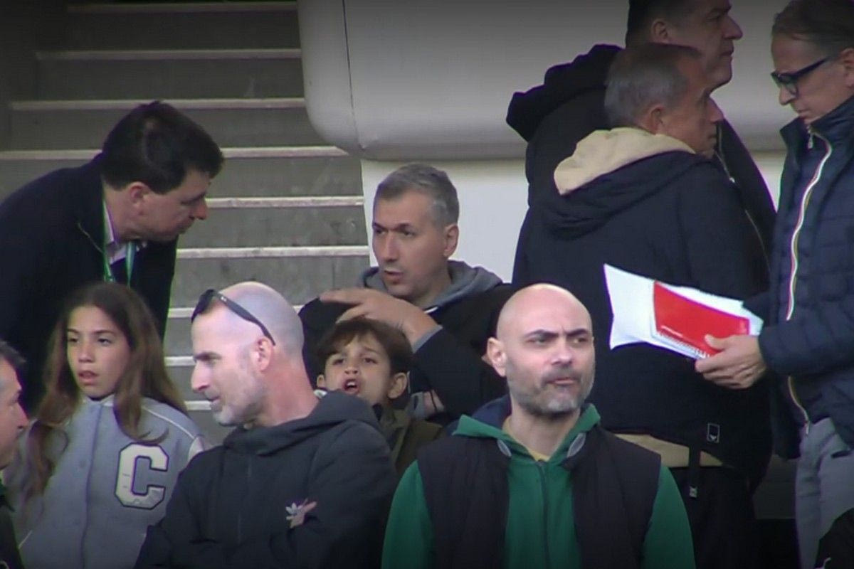 Η κάμερα της μετάδοσης “συνέλαβε” τον εμβληματικό αρχηγό της ομάδας μπάσκετ των “πράσινων” στην κερκίδα πριν την έναρξη του αγώνα.
