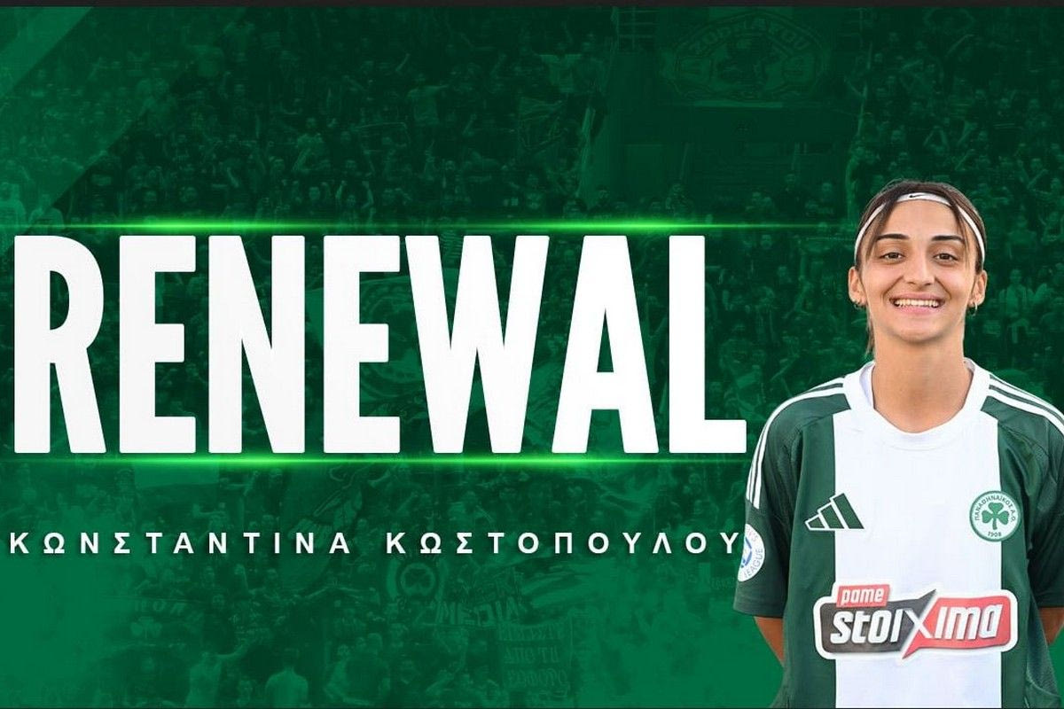 Η Κωνσταντίνα Κωστοπούλου ανανέωσε το συμβόλαιό της με την ομάδα ποδοσφαίρου γυναικών του Παναθηναϊκού.