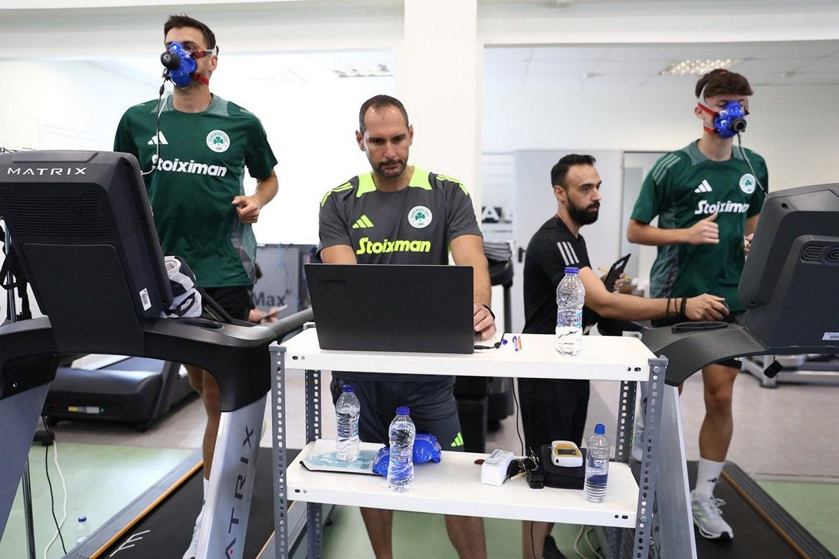 Επειτα, οι Πράσινοι χωρίστηκαν σε γκρουπ, προκειμένου να περάσουν από τα καθιερωμένα εργομετρικά τεστ.