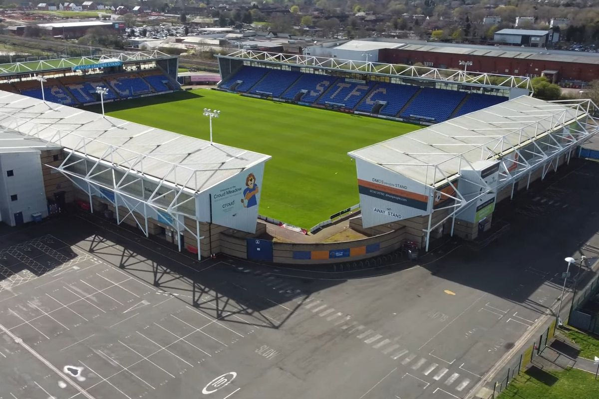 Όπως ανακοίνωσε, η Σριούσμπερι, αγγλική ομάδα της League 1, η Νιου Σεντς θα χρησιμοποιήσει το γήπεδό της, Κράουντ Μίντοου, για τα παιχνίδια του Conference League, μεταξύ των οποίων και αυτό με τους πράσινους.