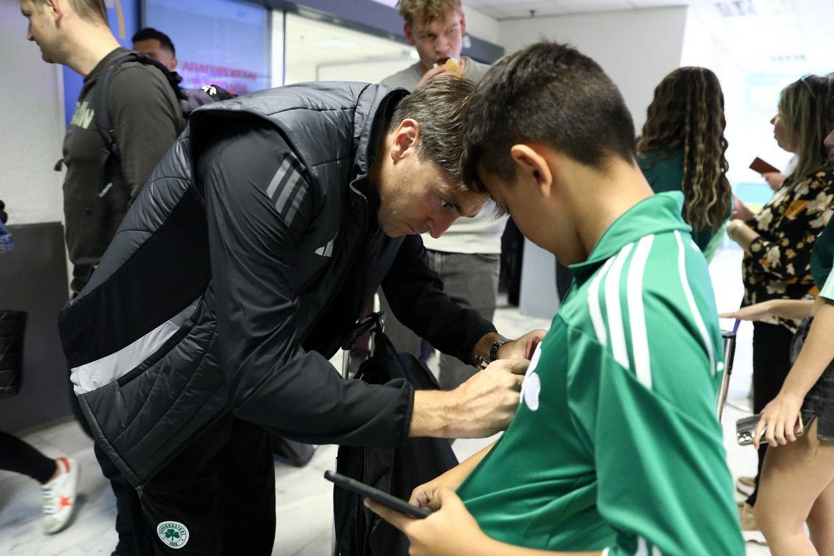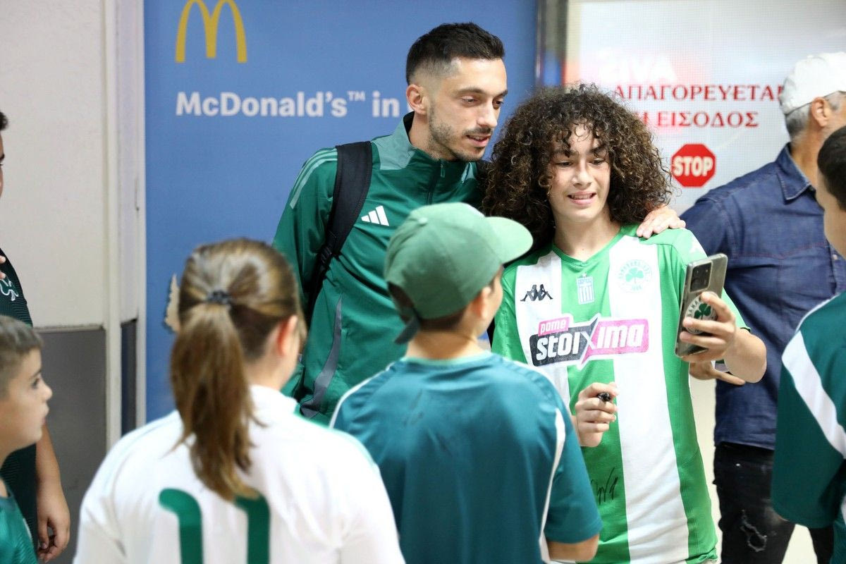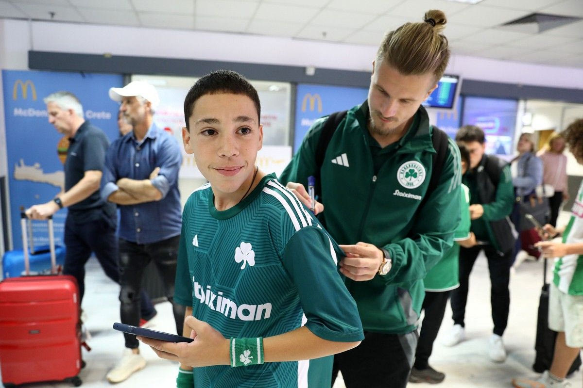 Μία κίνηση που συγκίνησε τους ποδοσφαιριστές του Παναθηναϊκού, λίγα λεπτά πριν πετάξουν για την Κρήτη. Κατά την άφιξη στο “Νίκος Καζαντζάκης” οι παίκτες του τριφυλλιού, αλλά και ο Ντιέγκο Αλόνσο, μοίρασαν αυτόγραφα και έβγαλαν φωτογραφίες με μικρούς φίλους της ομάδας, που περίμεναν να δουν από κοντά τα ινδάλματά τους.