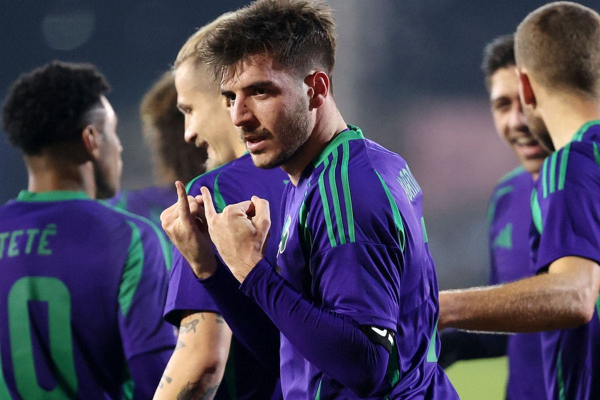 Ο Φώτης Ιωαννίδης πανηγυρίζει το γκολ του κόντρα στη Νιου Σεντς