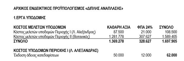 Ο προϋπολογισμός της Διπλής Ανάπλασης