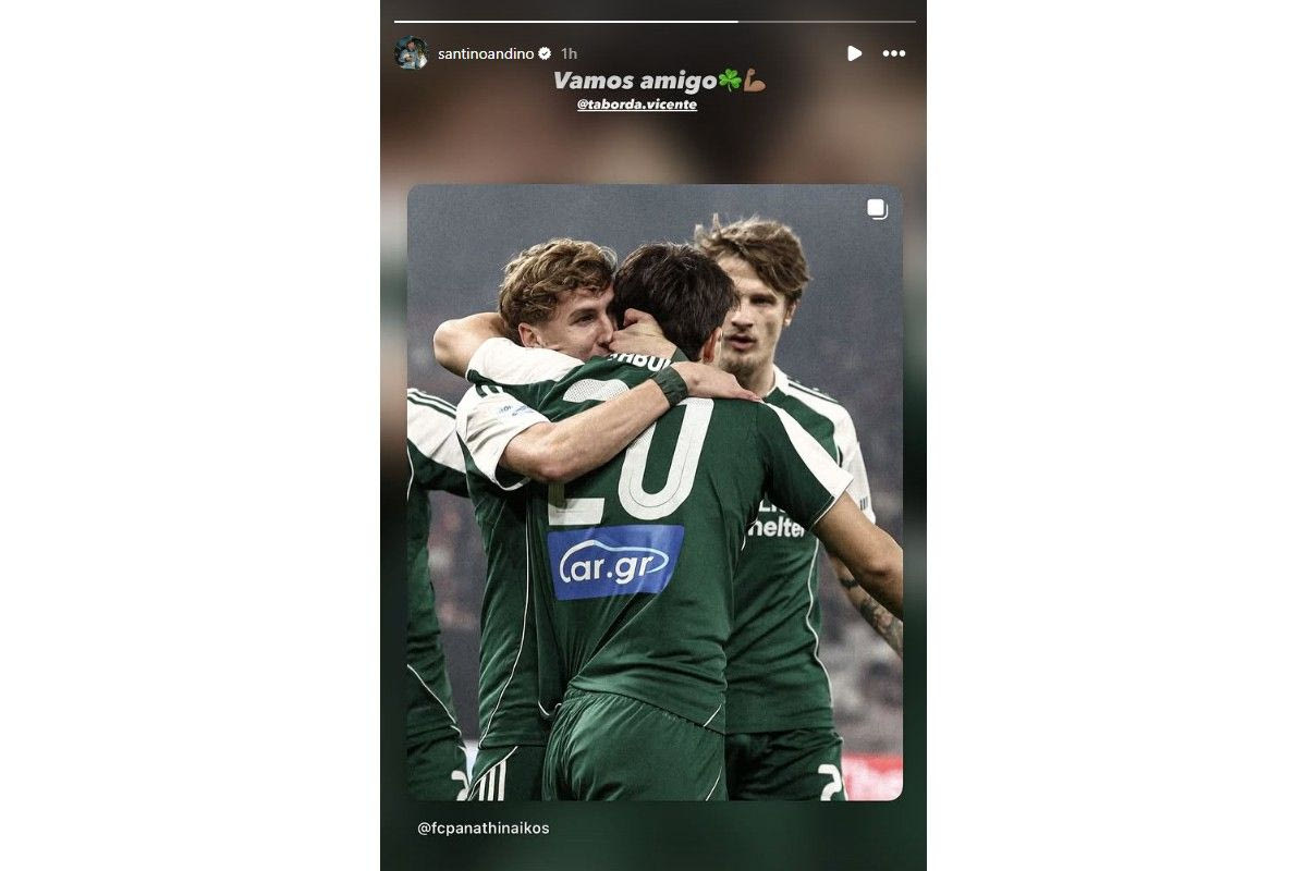 Ο Ταμπόρδα ξεκίνησε βασικός για τον Παναθηναϊκό στο “Καραϊσκάκης”, όπως και ο Σαντίνο Αντίνο. Οι δύο Αργεντίνοι είχαν καθοριστική συμβολή στη σπουδαία επικράτηση της ομάδας τους και μετά το ματς, ο Αντίνο έστειλε μήνυμα στήριξης στον συμπατριώτη του γράφοντας σε story στο Instagram: “Vamos amigo”.