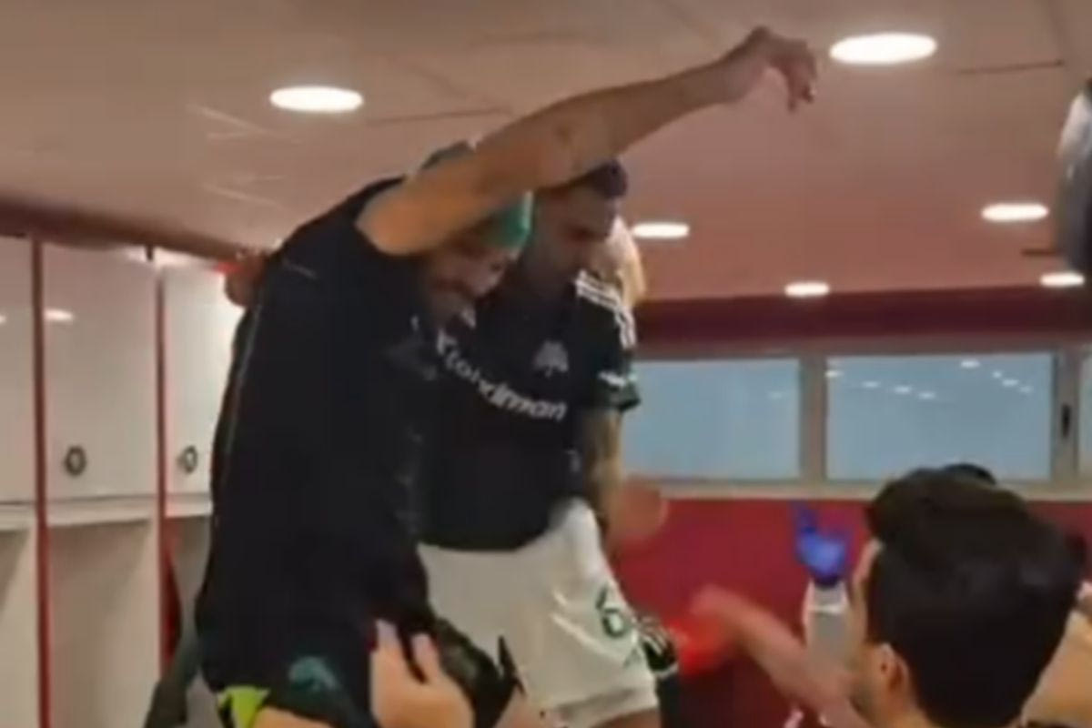 Οι παίκτες του Παναθηναϊκού πανηγύρισαν έξαλλα στα αποδυτήρια του Καραϊσκάκης την πρόκριση επί του Ολυμπιακού στην διαδικασία των πέναλτι.