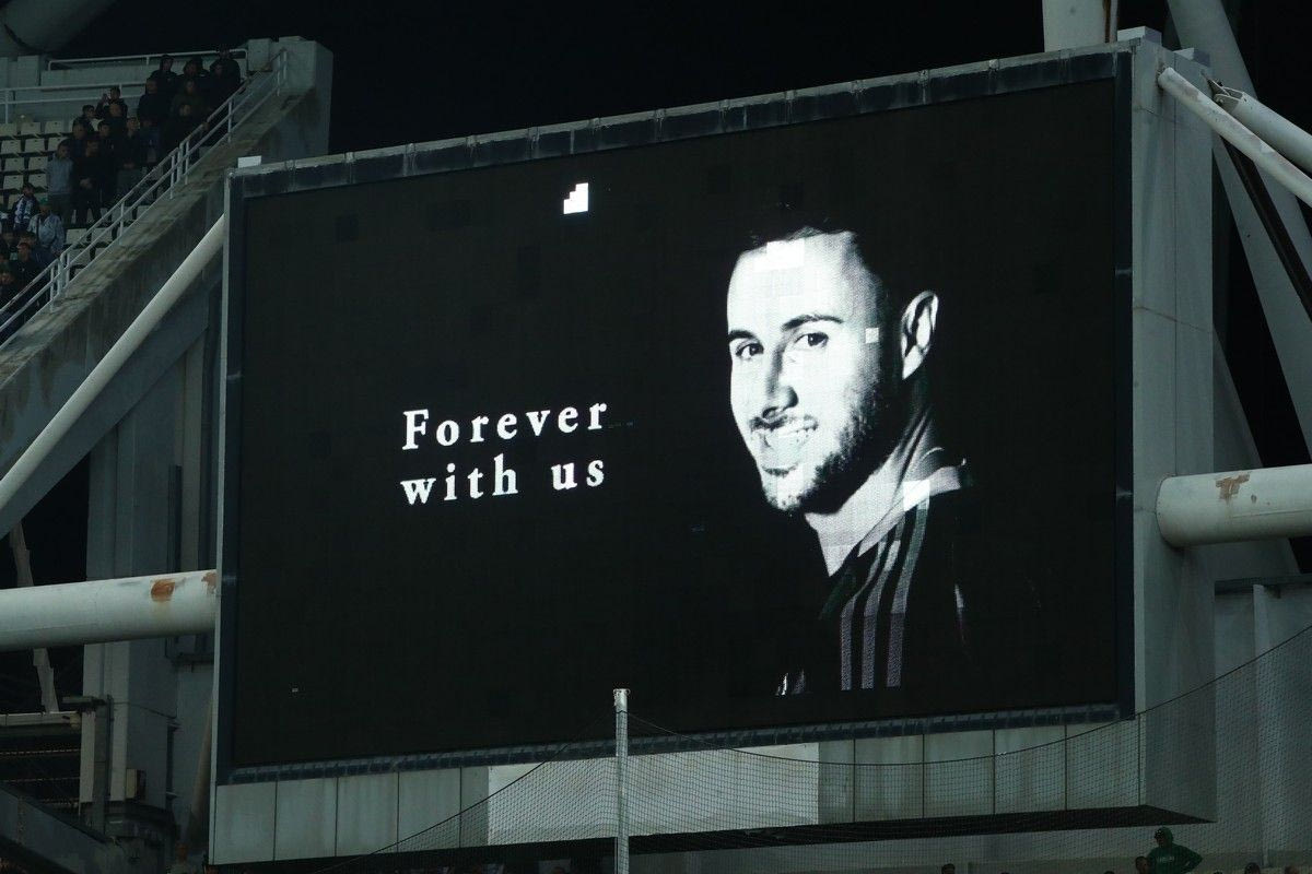 “Για πάντα μαζί μας”, ήταν το χαρακτηριστικό μήνυμα στα μάτριξ του σταδίου, δίπλα σε μία ασπρόμαυρη φωτογραφία του αδικοχαμένου ποδοσφαιριστή.