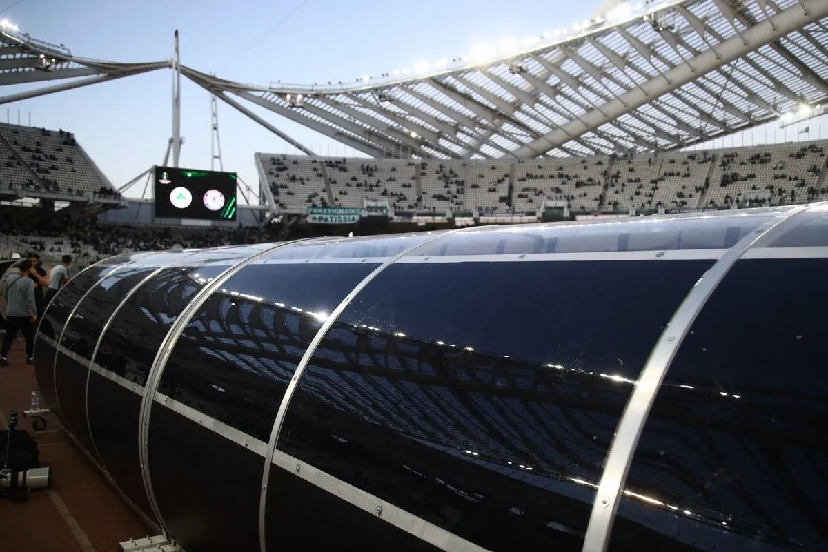 Μάλιστα, οι πάγκοι των δύο ομάδων ήταν στα μαύρα, χωρίς λογότυπα, δείγμα πένθους για τον άλλοτε ποδοσφαιριστή των πρασίνων.
