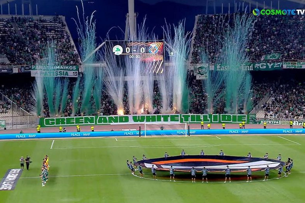 Μία απίστευτη υποδοχή επεφύλασσαν οι οπαδοί του Παναθηναϊκού στους παίκτες του Ιβάν Γιοβάνοβιτς κατά την είσοδό τους στον αγωνιστικό χώρο πριν από τη σέντρα με τη Βιγιαρεάλ στην πρεμιέρα των ομίλων του Europa League.