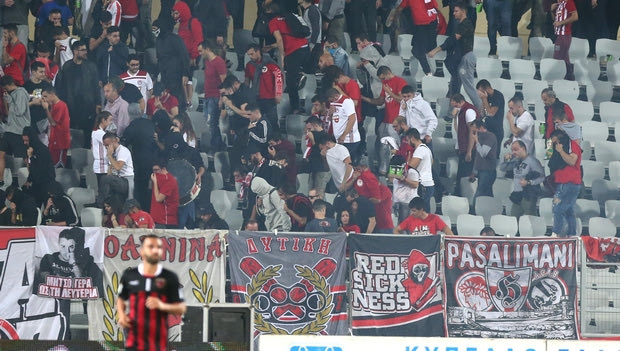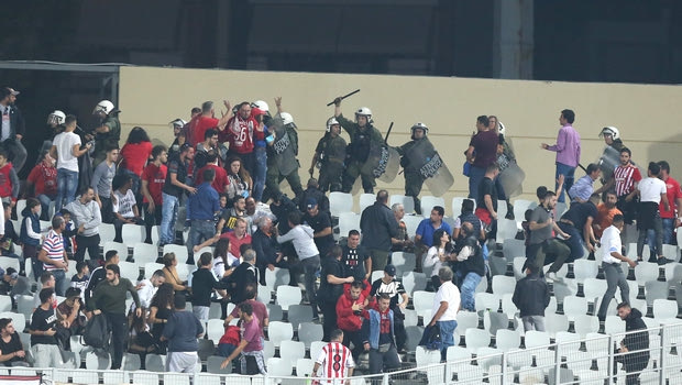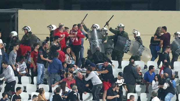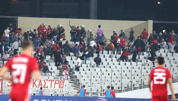 Εξαιτίας αυτού του γεγονότος, τα επεισόδια γενικεύτηκαν και μάλιστα μερίδα φίλων των Πειραιωτών μεταφέρθηκε στο πίσω μέρος της κερκίδας που έγινε το σκηνικό, προκειμένου να προστατευτούν. Τα επεισόδια είχαν ως αποτέλεσμα, μάλιστα, τον τραυματισμό 35χρονου άνδρα, που διεκομίσθη στο νοσοκομείο. Ο Ολυμπιακός κινδυνεύει πλέον με αφαίρεση βαθμών.
