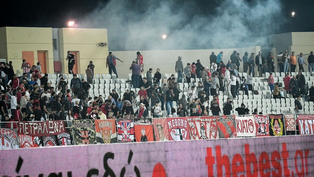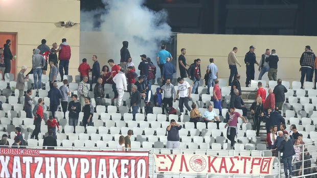 Στο 51ο λεπτό διακόπηκε για 15 λεπτά ο αγώνας Παναχαϊκή – Ολυμπιακός, λόγω επεισοδίων μεταξύ των αστυνομικών δυνάμεων και οπαδών των Ερυθρόλευκων. Τα επεισόδια ξεκίνησαν όταν υπήρξε καυγάς ορισμένων οπαδών του Ολυμπιακού μεταξύ τους. Ισχυρή αστυνομική δύναμη μπήκε ανάμεσά τους και έκανε εκτεταμένη χρήση χημικών για να τους χωρίσει.