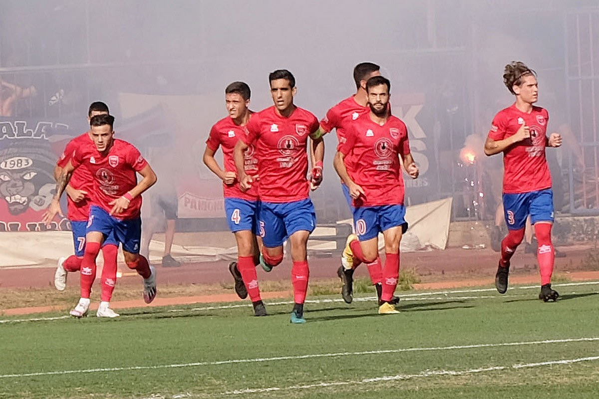 Οι παίκτες του Πανιωνίου σε στιγμιότυπο του αγώνα με την Κηφισιά για τα μπαράζ της Γ' Εθνικής 2020-2021 | Τετάρτη 7 Ιουλίου 2021 INTIME SPORTS