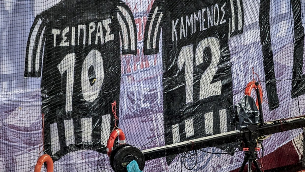 Πανό κατά του ΠΑΟΚ σήκωσαν στο “Γ. Καραϊσκάκης” οι οπαδοί του Ολυμπιακού πριν από τη σέντρα του ντέρμπι ( live η εξέλιξή του στο Sport24.gr), στο πλαίσιο της 5ης αγωνιστικής της Super League. Σε αυτό ήταν τυπωμένες δύο φανέλες του ΠΑΟΚ, με το επώνυμο του Πρωθυπουργού Αλέξη Τσίπρα και αυτό του Υπουργού Εθνικής Άμυνας, Πάνου Καμμένου.