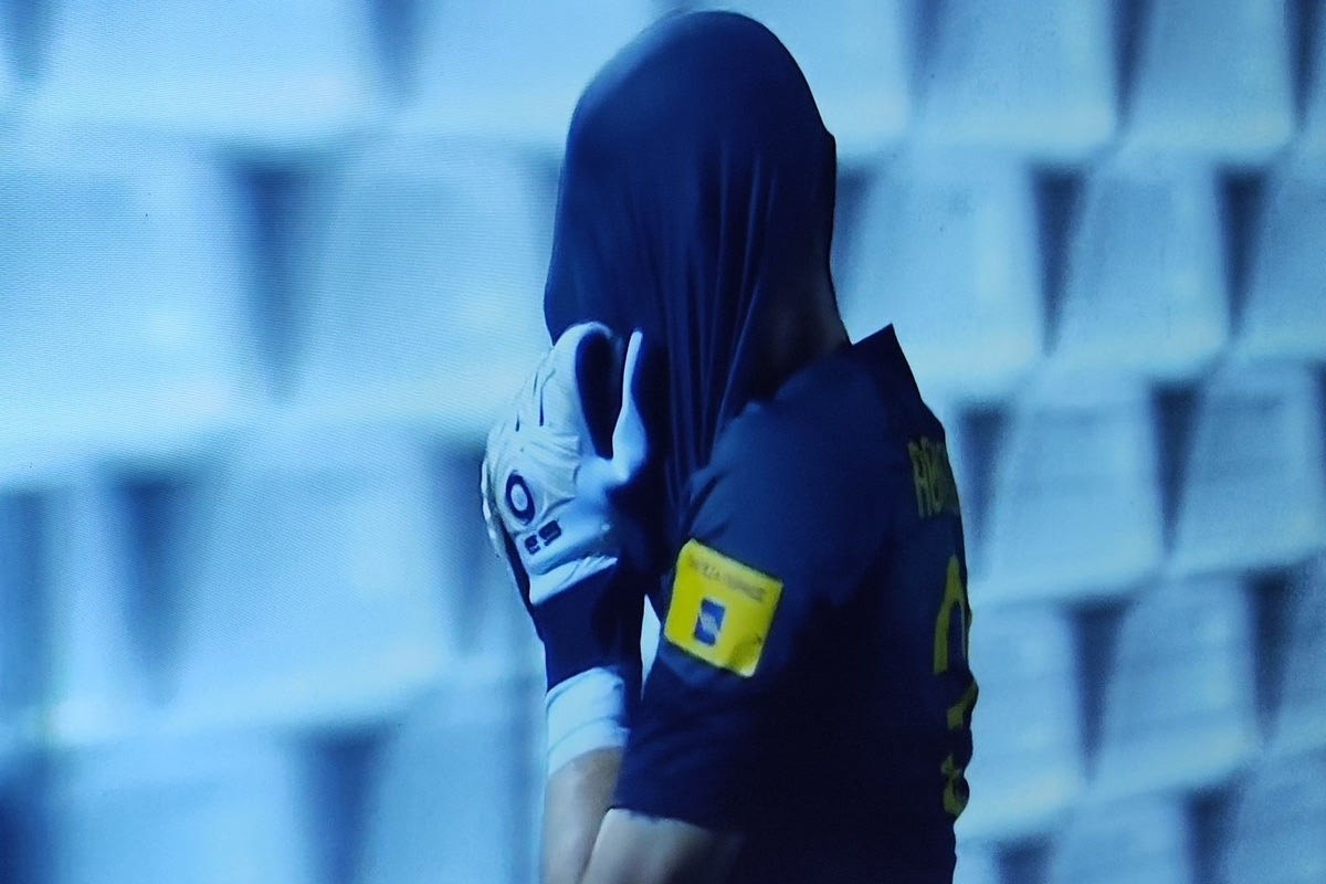 και να κρύβει το πρόσωπό του με τη μπλούζα του, μέσα στην απελπισία του για την απώλεια δύο βαθμών από την ομάδα του.