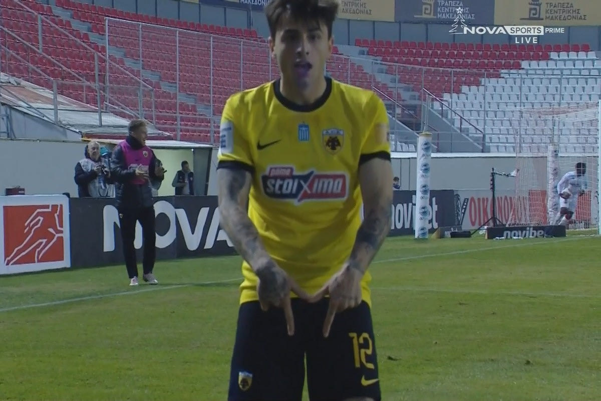 Πανσερραϊκός – ΑΕΚ: Ο Ρότα σκόραρε με το στήθος και πανηγύρισε με το “Μ” για τον Μιχάλη Κατσούρη