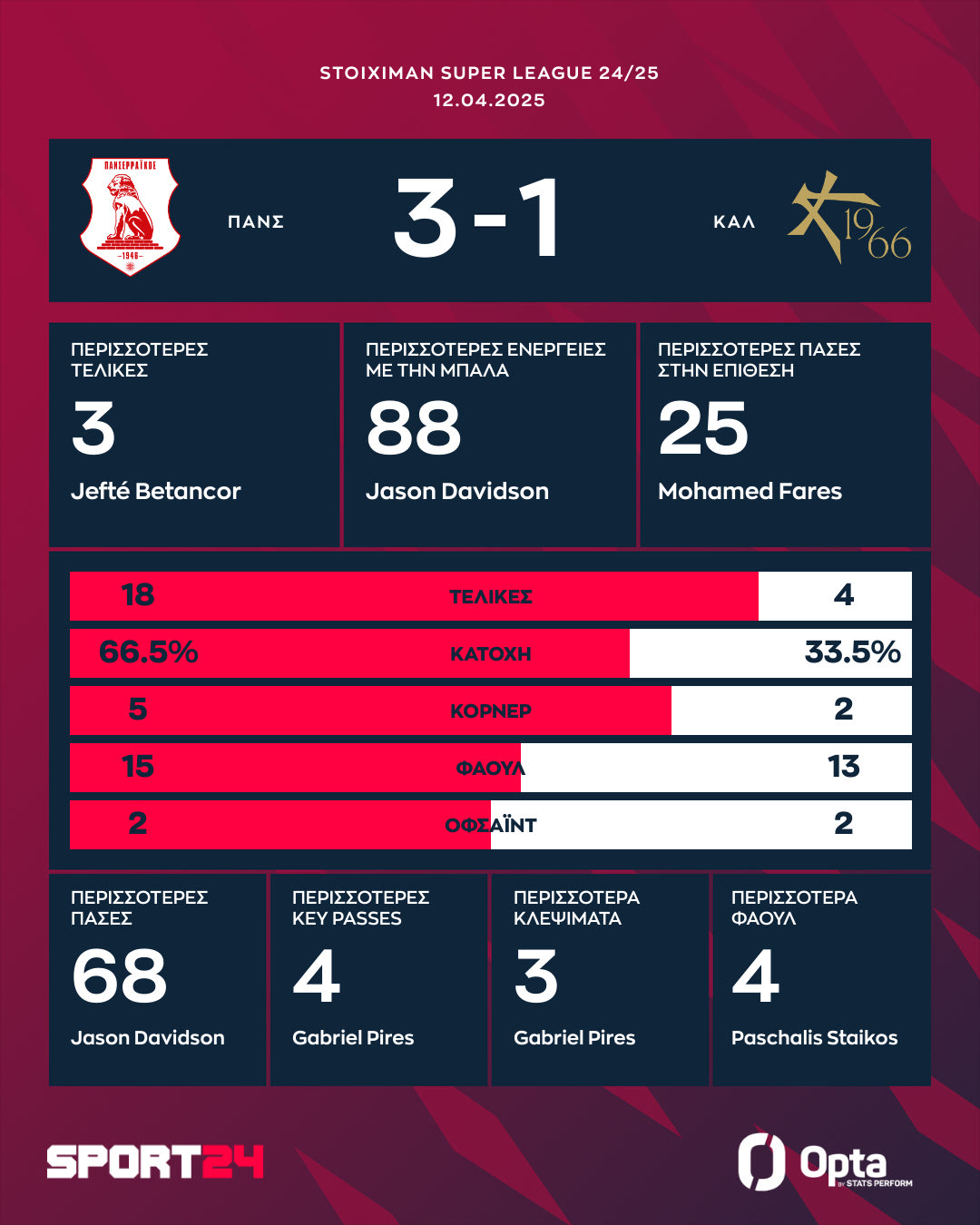 Στάικος, Μπετανκόρ (με πέναλτι) και Σαλαζάρ οι σκόρερ για τους γηπεδούχους. Ο Πανσερραϊκός έφτασε στους 32 πόντους και στο +7 από την Athens Kallithea, που έμεινε στους 25 πόντους στη μάχη της παραμονής.