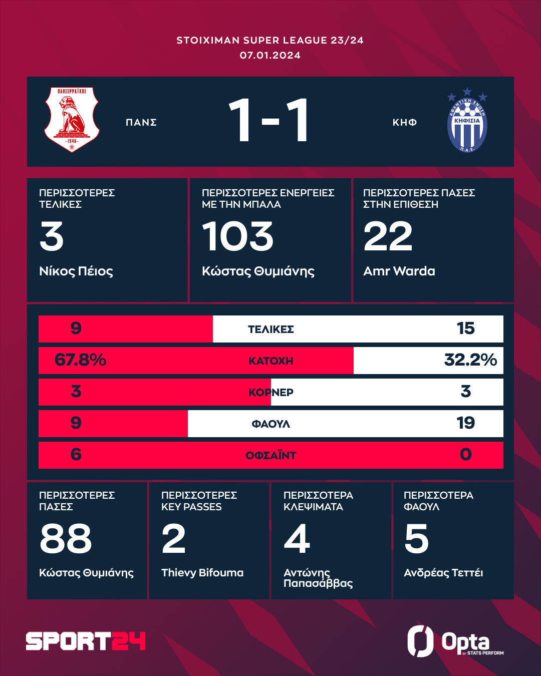 Η Κηφισιά πήρε το προβάδισμα με τον Μπιφουμά και κρατούσε το τρίποντο στα χέρια της, όμως ο Χεφτέ Μπετανκόρ σκόραρε στο ντεμπούτο του στο 85ο λεπτό και έσωσε την παρτίδα για τον Πανσερραϊκό.