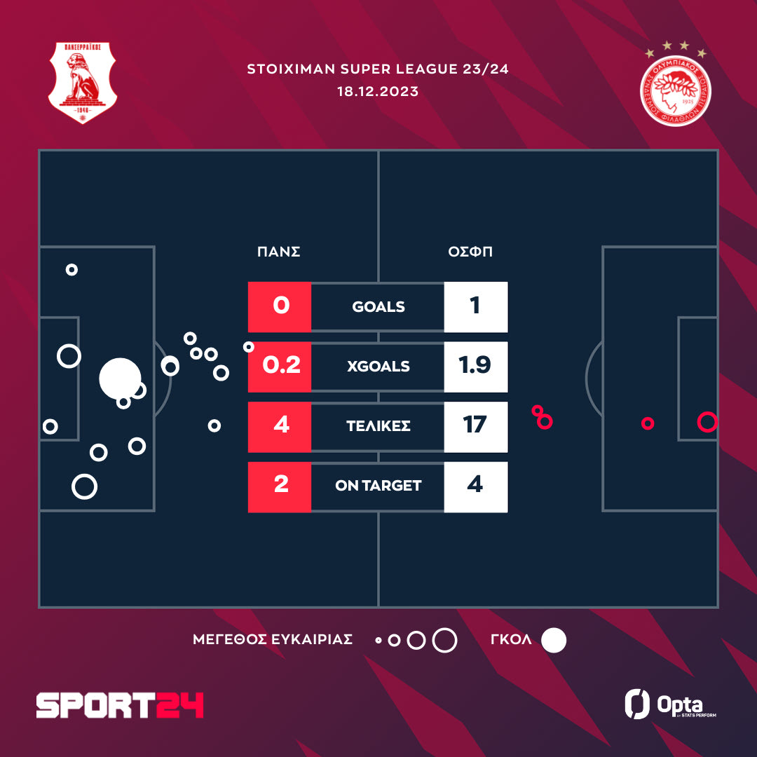 Όπως ήταν φυσικό, το παιχνίδι άνοιξε λίγο περισσότερο στη συνέχεια, με τον Πανσερραϊκό να ανεβαίνει πιο ψηλά, αλλά να μην μπορεί να αντιδράσει ουσιαστικά. Ο Ολυμπιακός βρήκε πιο πολλούς χώρους και στο 89′ θα μπορούσε να σκοράρει και δεύτερη φορά.