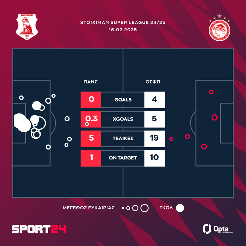 Έτσι οι Πειραιώτες έμειναν για 23ο συνεχόμενο παιχνίδι αήττητοι σε όλες τις διοργανώσεις και φιγουράρουν ξανά στην κορυφή της βαθμολογίας μία εβδομάδα πριν το ντέρμπι με τον ΠΑΟΚ.