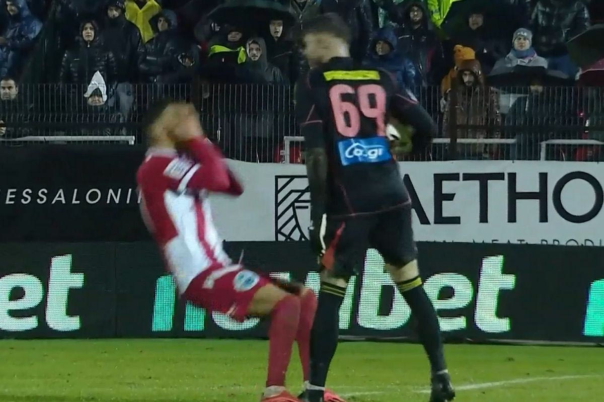 Ο Μπετανκόρ έπεσε στο έδαφος μπροστά στα μάτια του Τσαγκαράκη, που έδειξε αμέσως την άσπρη βούλα και την κόκκινη κάρτα στον Ντραγκόβσκι.