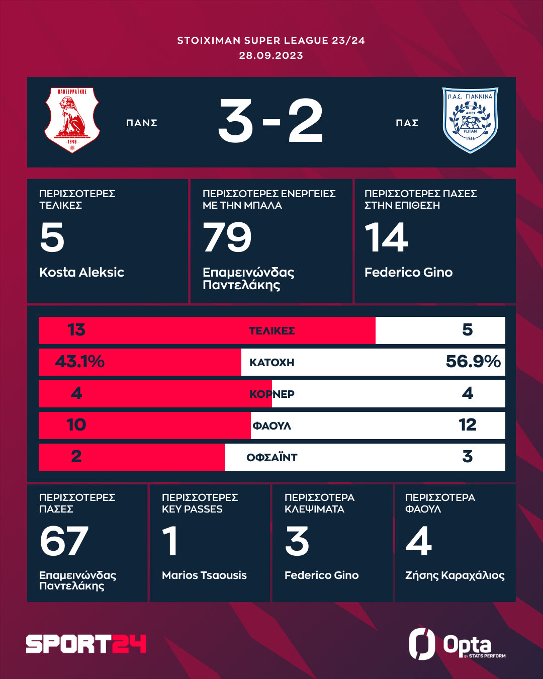 Ο Πανσερραϊκός πήρε μεγάλη νίκη επικρατώντας 3-2 του ΠΑΣ Γιάννινα σ' ένα σπουδαίο παιχνίδι που έγινε στις Σέρρες για την 6η αγωνιστική της Stoiximan Super League. Ήρωας για τους γηπεδούχους ο Άλεκσιτς με γκολ στο 90'.